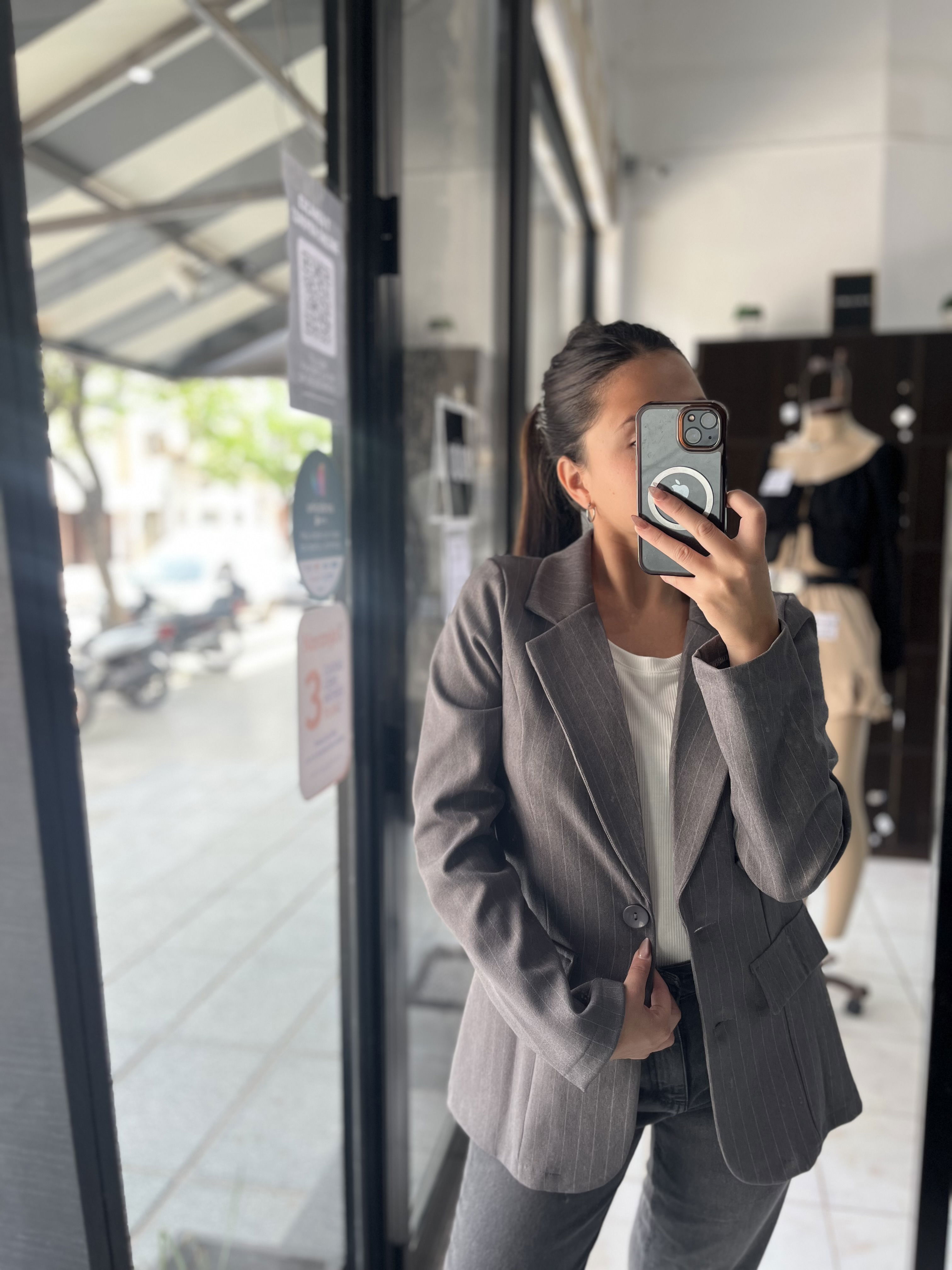 BLAZZER GRIS A RAYAS